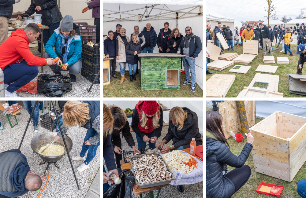 Múlt héten rendeztük meg az éves Orbico Konferenciát Zalakaroson. A tudásátadáson, tervezésen és meetingeken kívül idén egy különleges programmal készültünk: jótékonysággal egybekötött csapatépítést szerveztünk a kollégáknak, hiszen az Orbico közösség ereje a segítségnyújtásban is rejlik. Közel 180-an fogtunk össze és 20 kutyaházat építettünk a Nagykanizsai Élettér Állatmenhely számára, hogy a kutyusaik könnyebben átvészeljék a hideg időket. Ezen kívül pedig hatalmas bográcsokban csapatostul főztünk 400 adag ételt, amit utána a lelkes kollégáink ki is osztottak a közeli településen élő rászorulók számára. Jó érzés volt számunkra, hogy a jó ügyekért ennyien össze tudtunk fogni és közösen segíthettünk másokon.