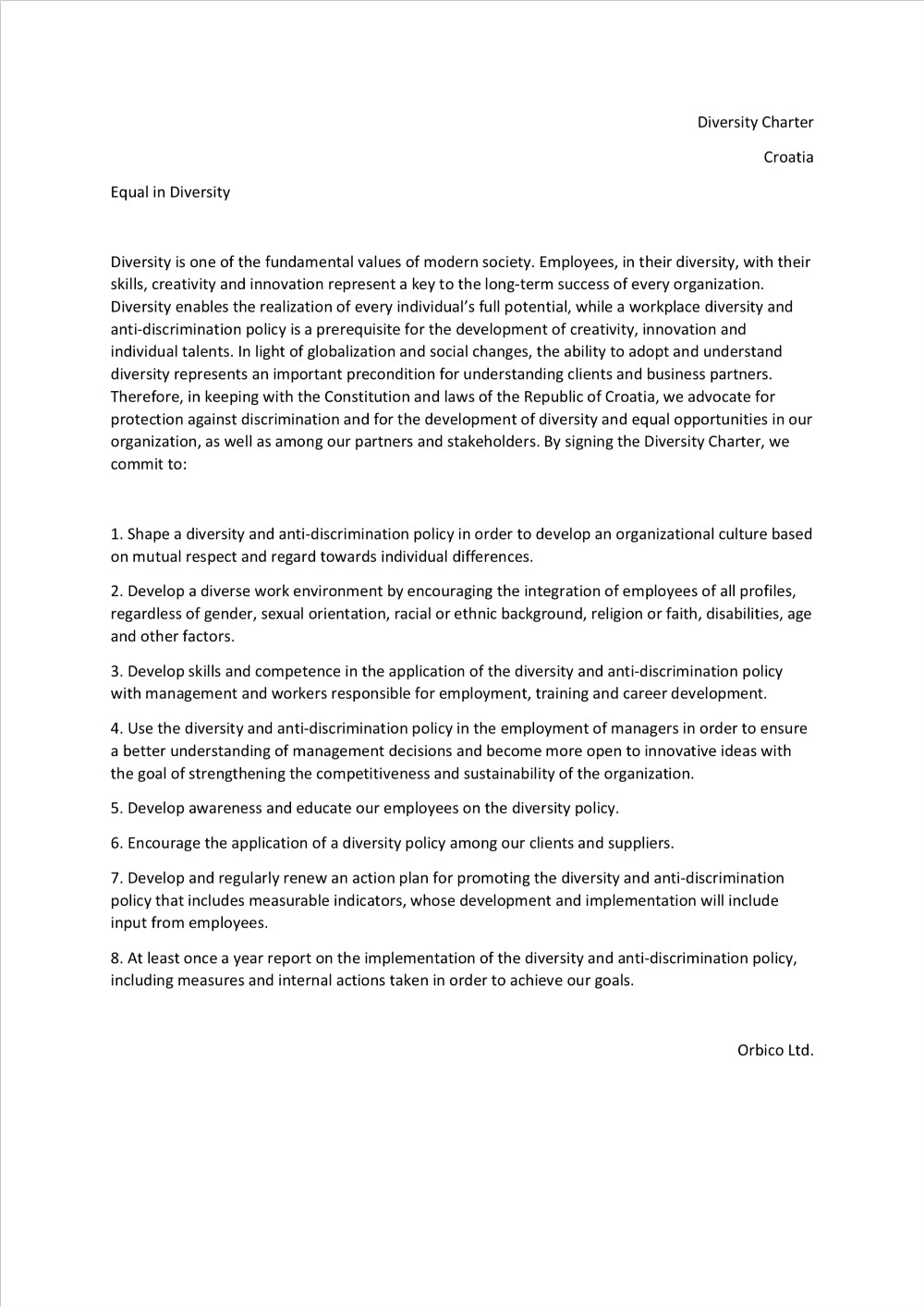 Orbico has signed the Croatian Diversity Charter